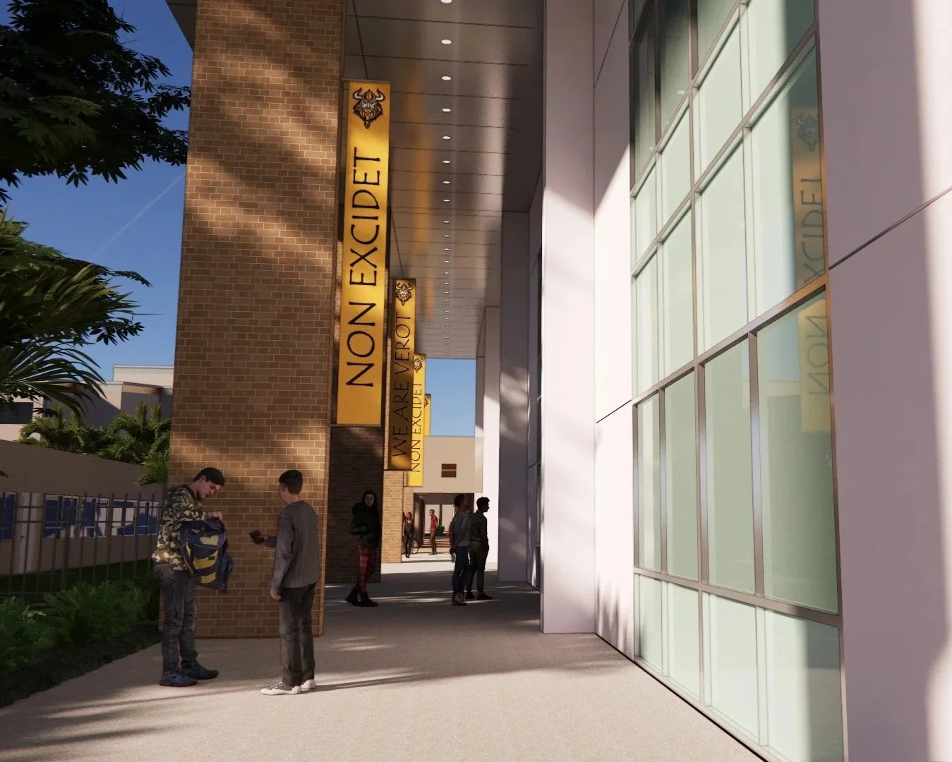 Bishop Verot High School recognizes the unlimited potential and growth that can be found on campus. With this in mind, a collaborative and thoughtful effort put forth by the staff and design team developed the addition of a two-story academic building to further fuel academic endeavors with classrooms suited to challenge and champion students. Additionally, teachers and faculty will also be accommodated and supported in this elevated setting. Aimed towards a collegiate experience, the Academic Building consists of 27 new classrooms equipped for enriching traditional courses, engaging science studies, and stimulating arts in various mediums. Classmate interaction is encouraged in modern and comfortable gathering spaces featured throughout the building, along with a bright display area that showcases the artistical talents of the students as the school year progresses.